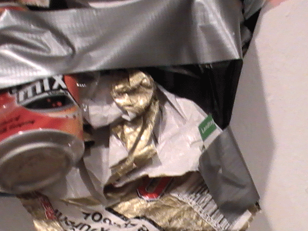 Das Material dazu sammelte ich, inspiriert durch das Erlebte und Erzählte, in nächtlichen Streifzügen auf Strassen und in Abfallbehältern. Ich schleppte meine Beute wie Jagdtrophäen in meine Behausung auf Zeit, wo Sie teilweise unmittelbar neue Verwendung fanden.