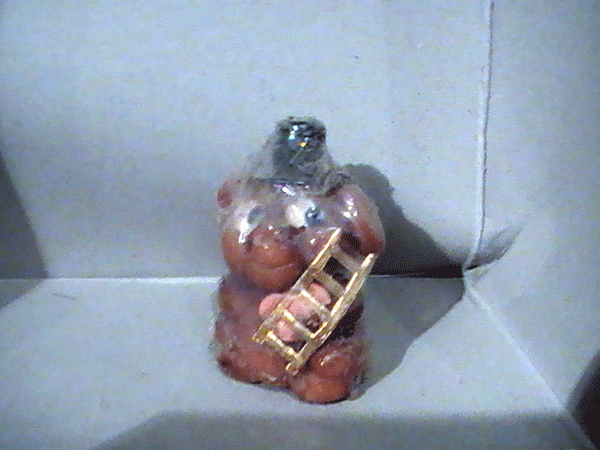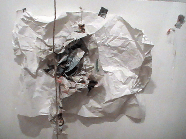 Die Arbeit blieb fragmentarisch, teils aus zeitlichem Grund, teils aber auch als Gegenmodell zu meiner 1. Installation, die einem Micro-Kosmos in Zimmer-Raumformat glich, was die Komplexität der Ausführung betraf.